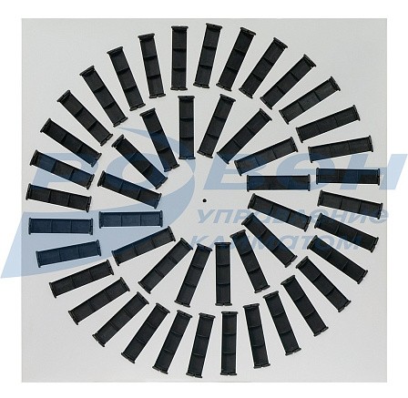 В стандартном исполнении в квадратных и круглых диффузорах типоразмеров 300/8, 400/12, 400/16, 450/16, 450/20, 500/16, 500/24 и 600/24 установка направляющих лопаток формирует на выходе вихрь, вращающийся против часовой стрелки. В типоразмере 600x48 направляющие лопатки наружного ряда формируют вихрь против часовой стрелки, а внутреннего ряда – вихрь по часовой стрелке.